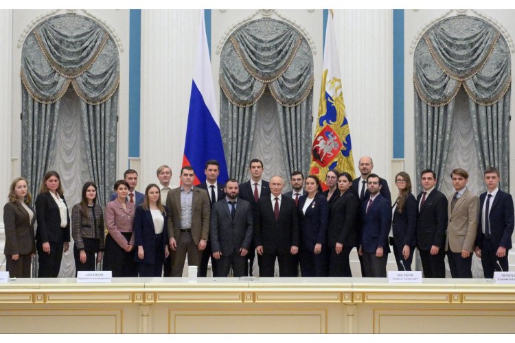 Президент России Владимир Путин с участниками V Конгресса молодых ученых.