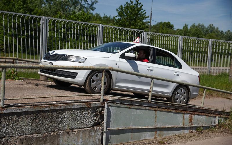 На этом этапе курсанты демонстрируют свои навыки управления автомобилем на специально оборудованной тренировочной площадке.