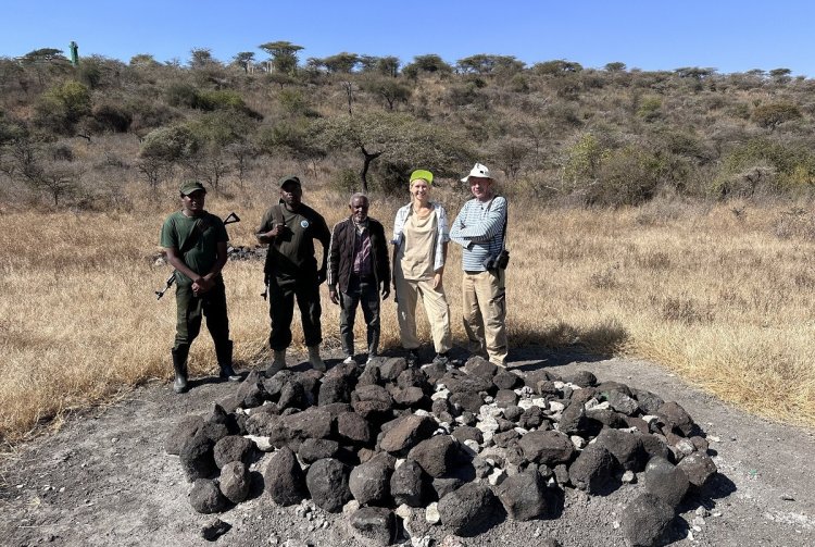 Минералоги СПбГУ Анатолий Зайцев и Ольга Зайцева с сотрудниками администрации Нгоронгоро. Иллюстрация предоставлена Анатолием Зайцевым